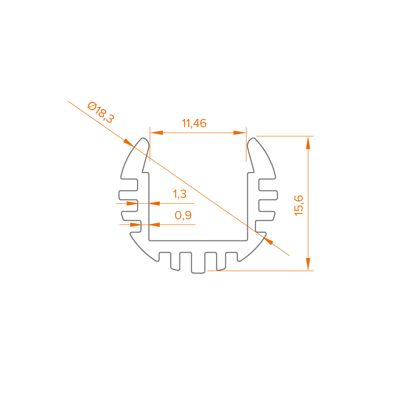 Алюминиевый анодированный профиль для светодиодных лент серии WLS. Ширина площадки для ленты 11,2 мм.