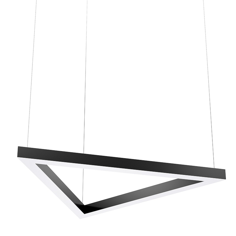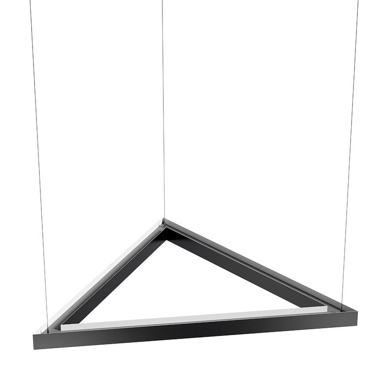 Корпус светильника треугольной формы может быть выполнен в черном, белом и сером цветах. Цветовая температура на выбор: теплый цвет (3000К), нейтральный (4000К) или холодный (6500К). Материал корпуса металл, размеры на выбор заказчика. Тип крепления: подвесной или накладной монтаж.